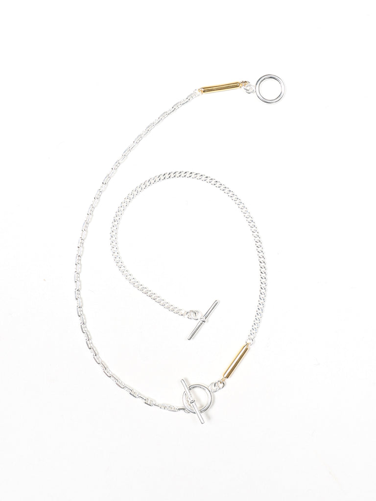 925シルバーのチェーンを2種類ミックスさせたネックレス&ブレスレット。