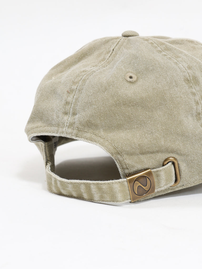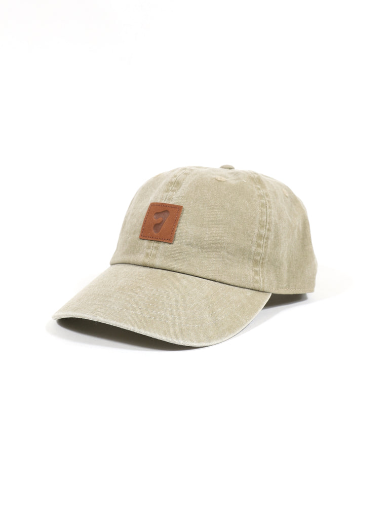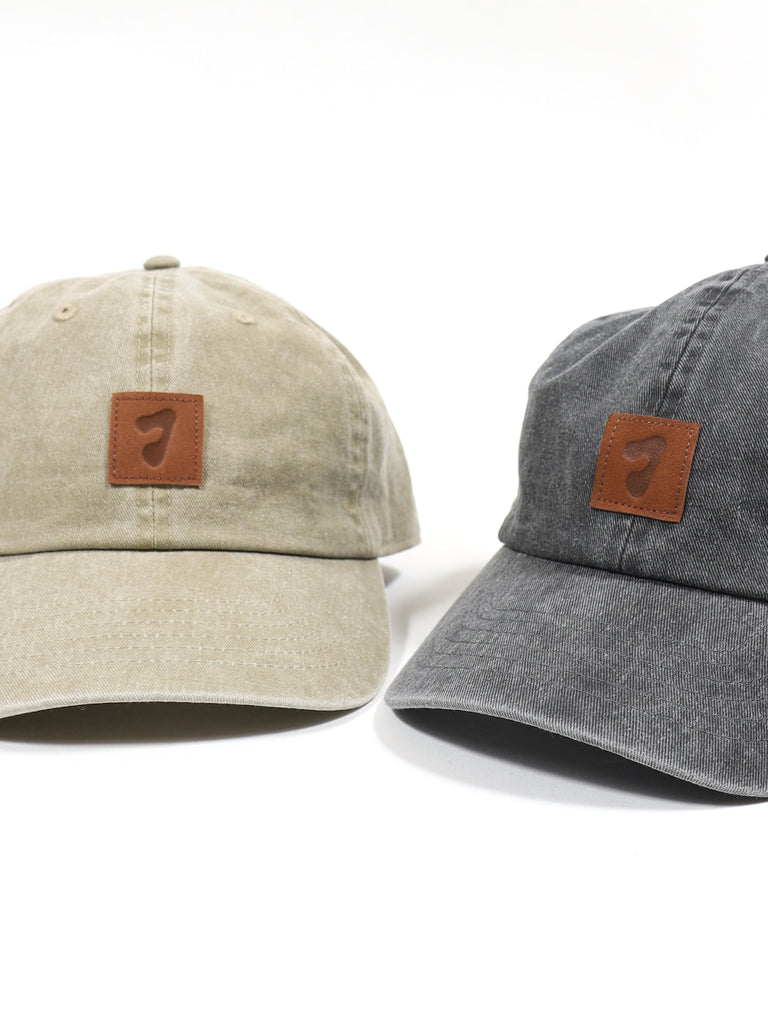 オリジナルの革パッチを配したピグメント染のキャップです。