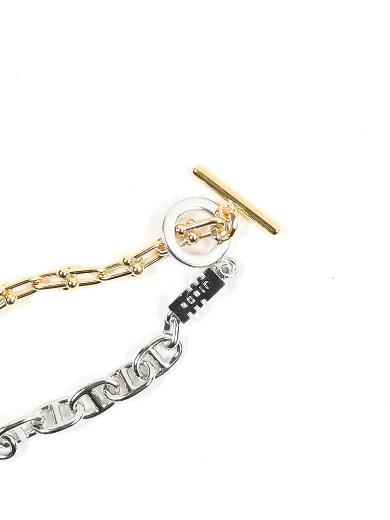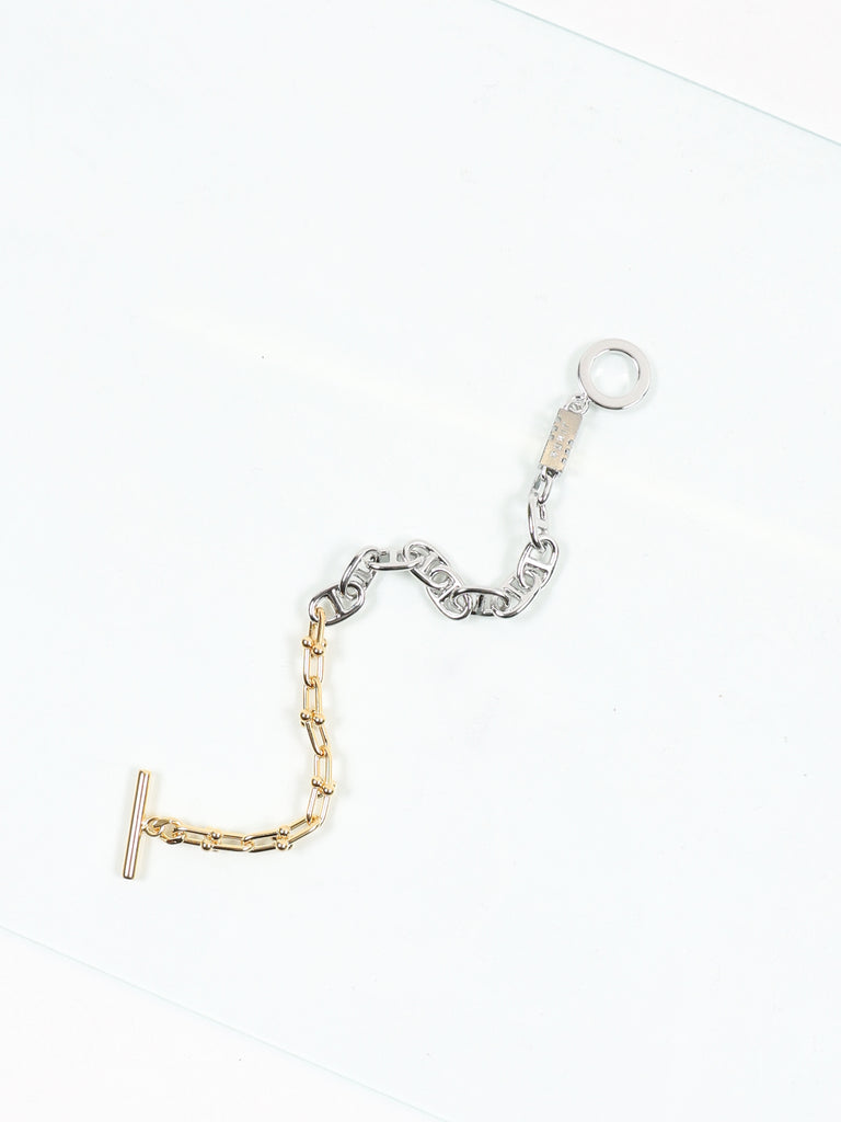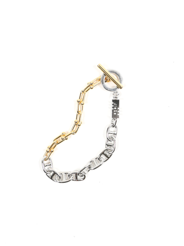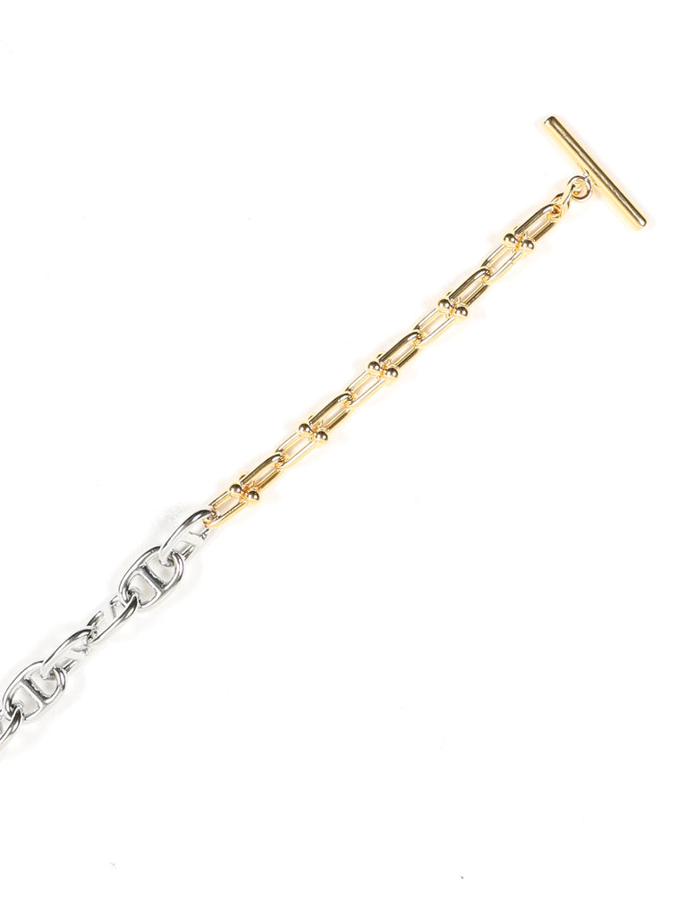 マンテルタイプの留め具を採用したため着脱もしやすく、ブランドロゴのネームパーツを組み込んだブレスレットとなっております。