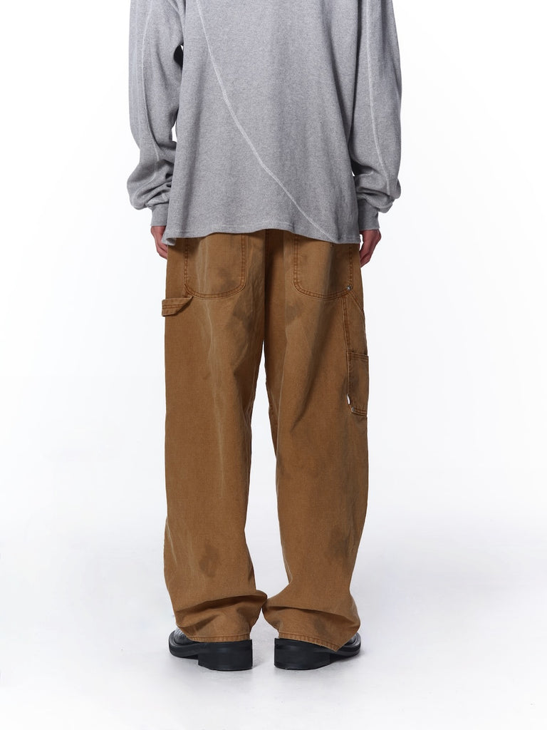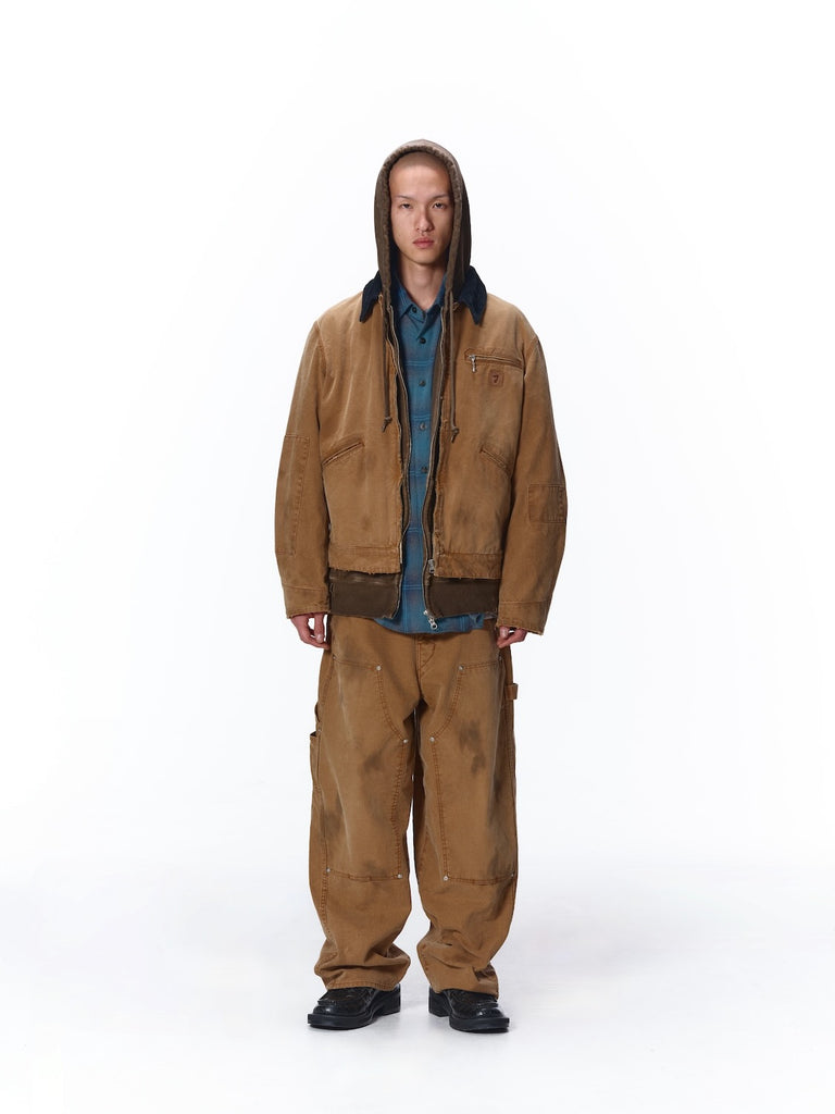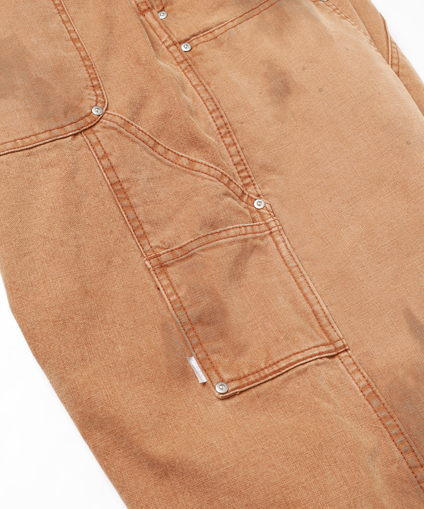 タフな生地感にユーズド加工を施し、汚しの加工やポケット口、裾などにダメージ加工を施しております。
