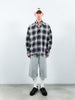 ダブルニー、5ポケットといったワークウェアで見られるディテールを入れ、ダブルニー部分にはリベットを打っております。裾はカットオフ仕様となっており、ウエストにはゴムを入れ、スピンドルでサイズ調節が可能となっております。