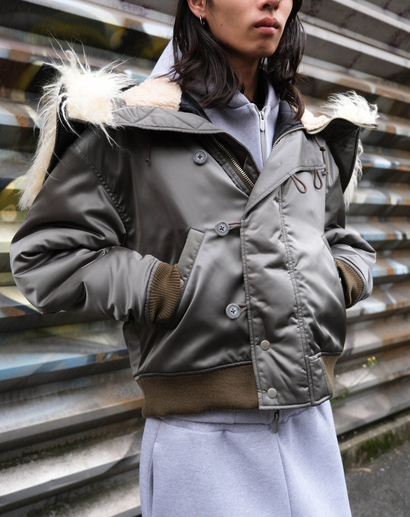 USAFで採用されたN-2Aのデザインがベースとなっており、頭をすっぽりと収める大型のフードにはボア素材を使用し、フード口にはファーの素材を使用しております。フード後に配したジップは開けることでセーラーカラーになり様々な着こなしを楽しめる1着。