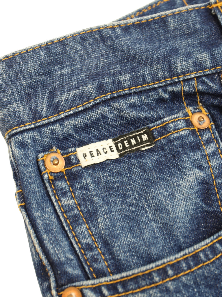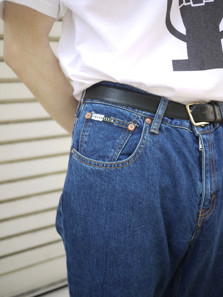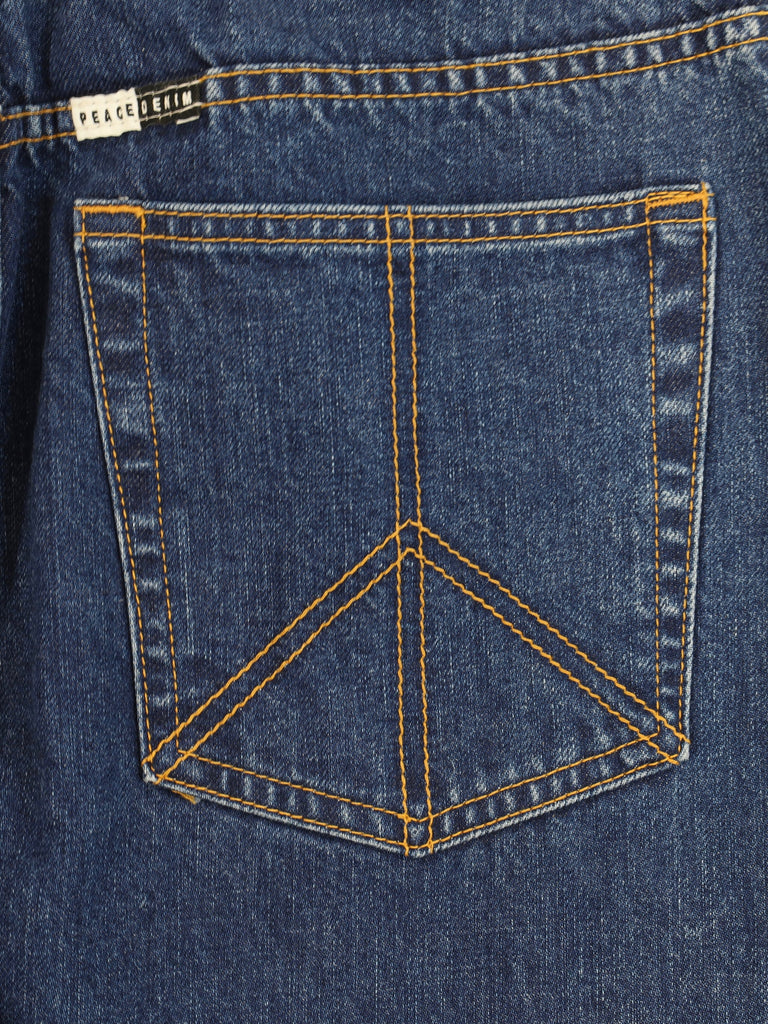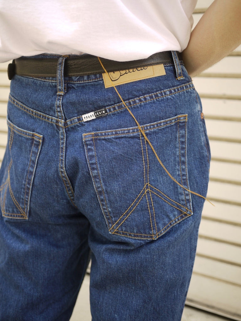 ベーシックなデザインながら、ピースマークを配したオリジナルボタンやピースマークのステッチなど、ディテールに拘った1本となっております。