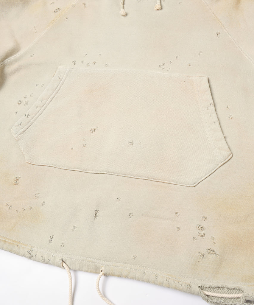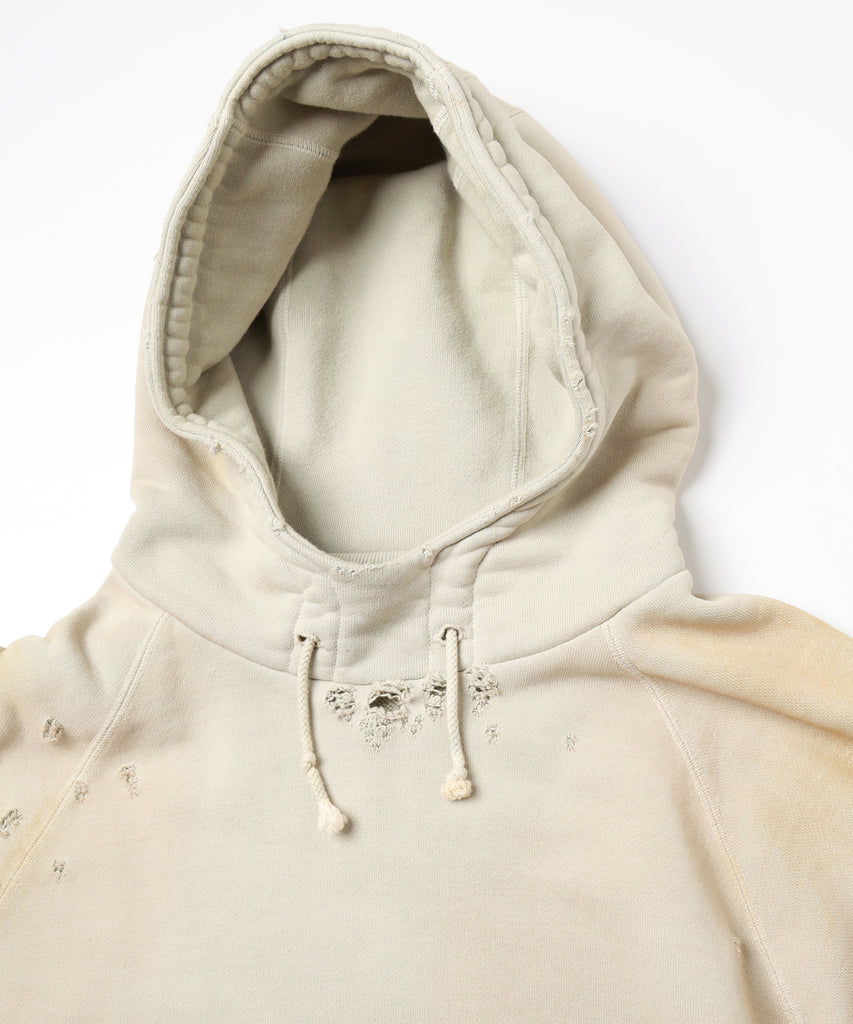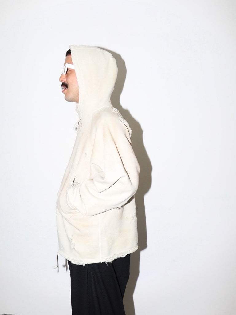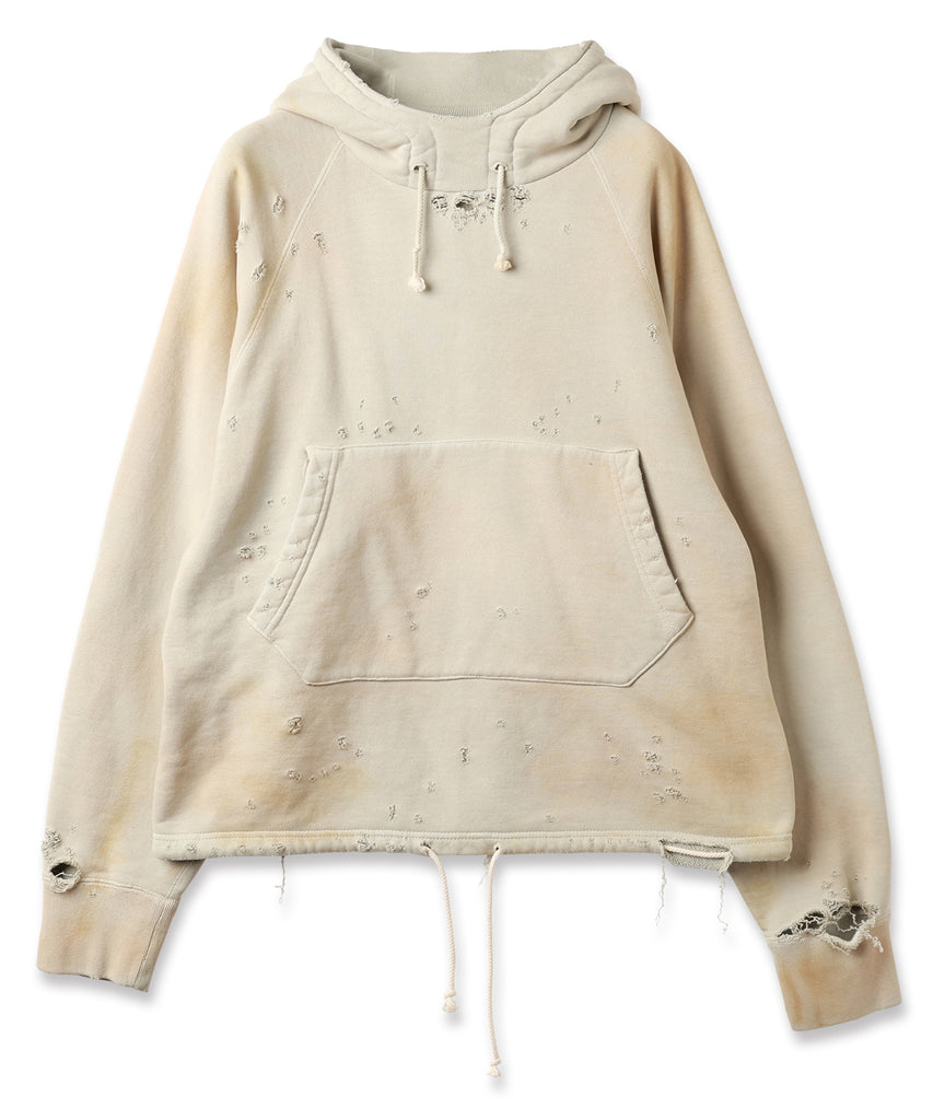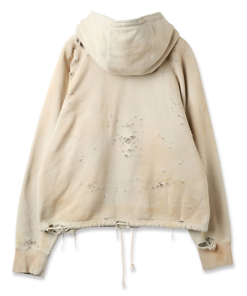 ダメージ加工が特徴的なフーディ。