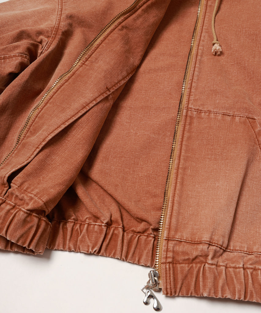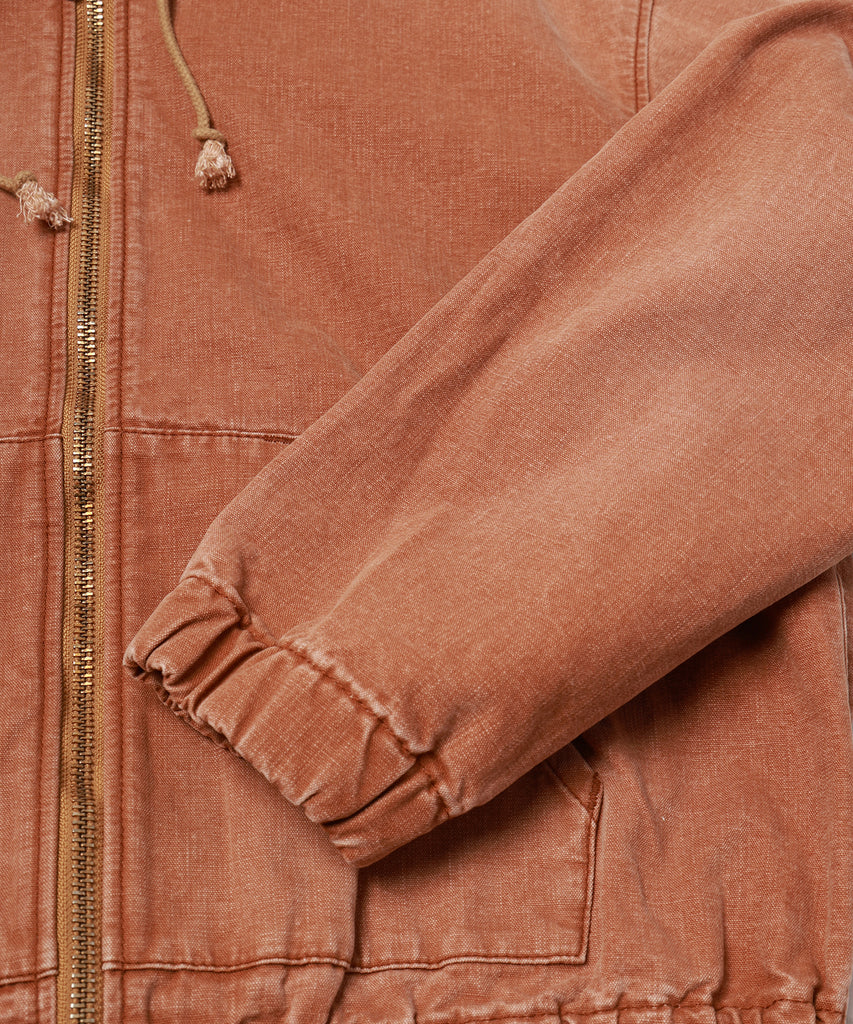 袖部分にはひげを入れるなど製品にUSED加工を施し、洗いの工程でできたナチュラルなダメージ感など細部の加工感までこだわり仕上げた1着となっております。