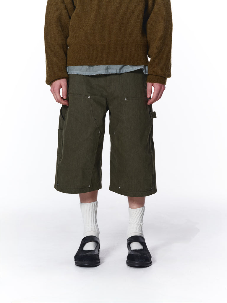 オリジナルのカツラギ生地を使用した、3/4ダブルニーパンツ。