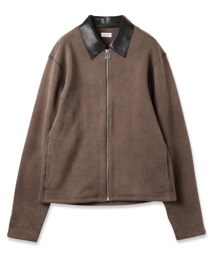 リアルレザーのスイッチングがアクセントのジップジャケット。