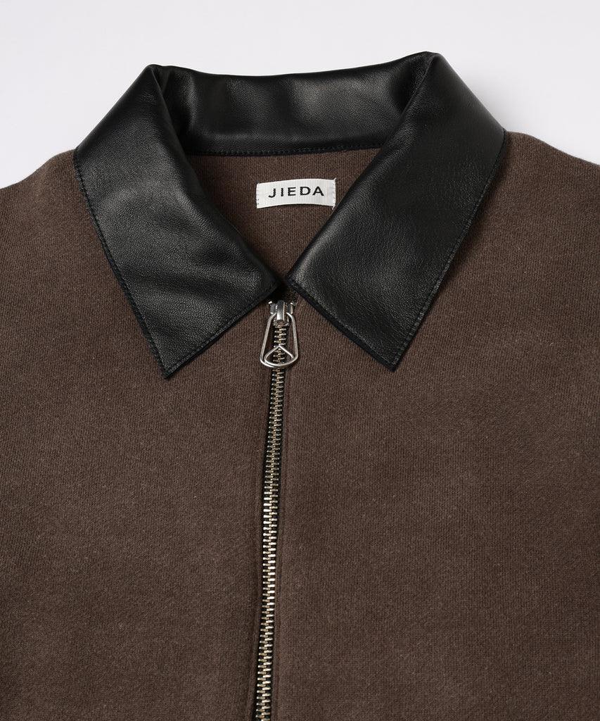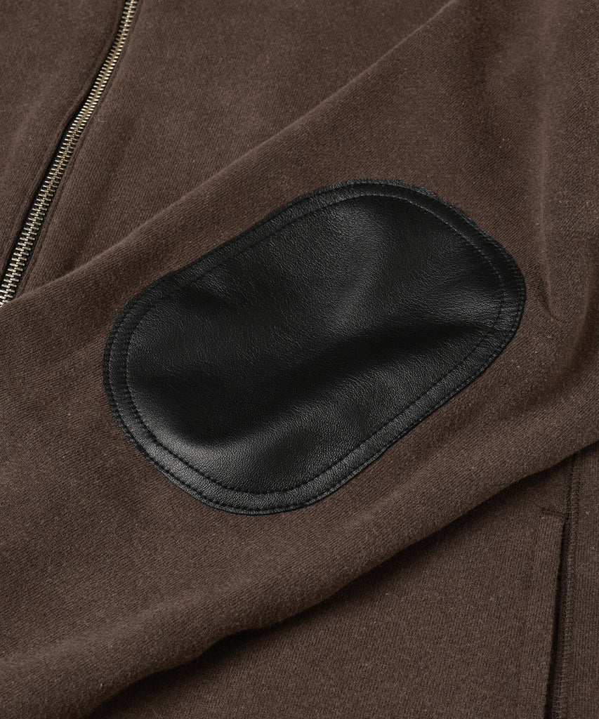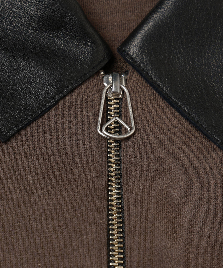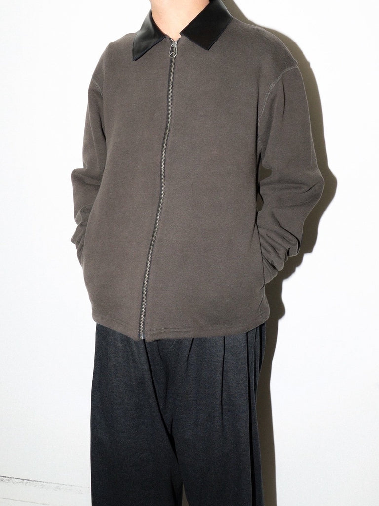LEATHER COLLAR FADE SWEAT ZIP JACKET