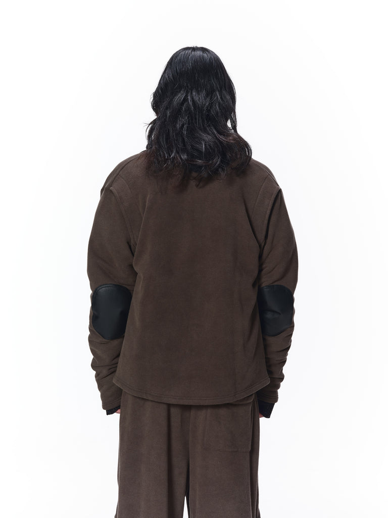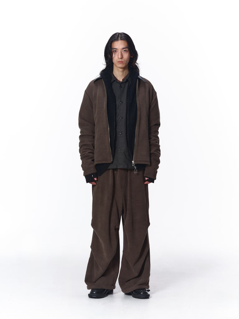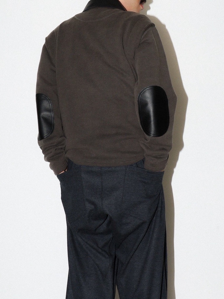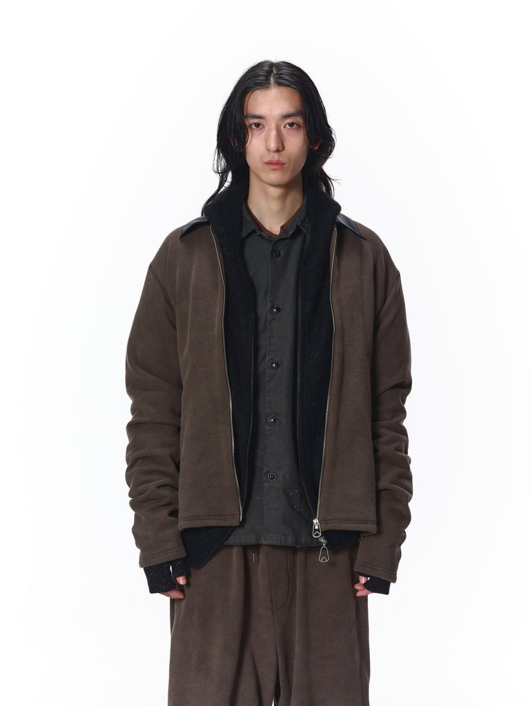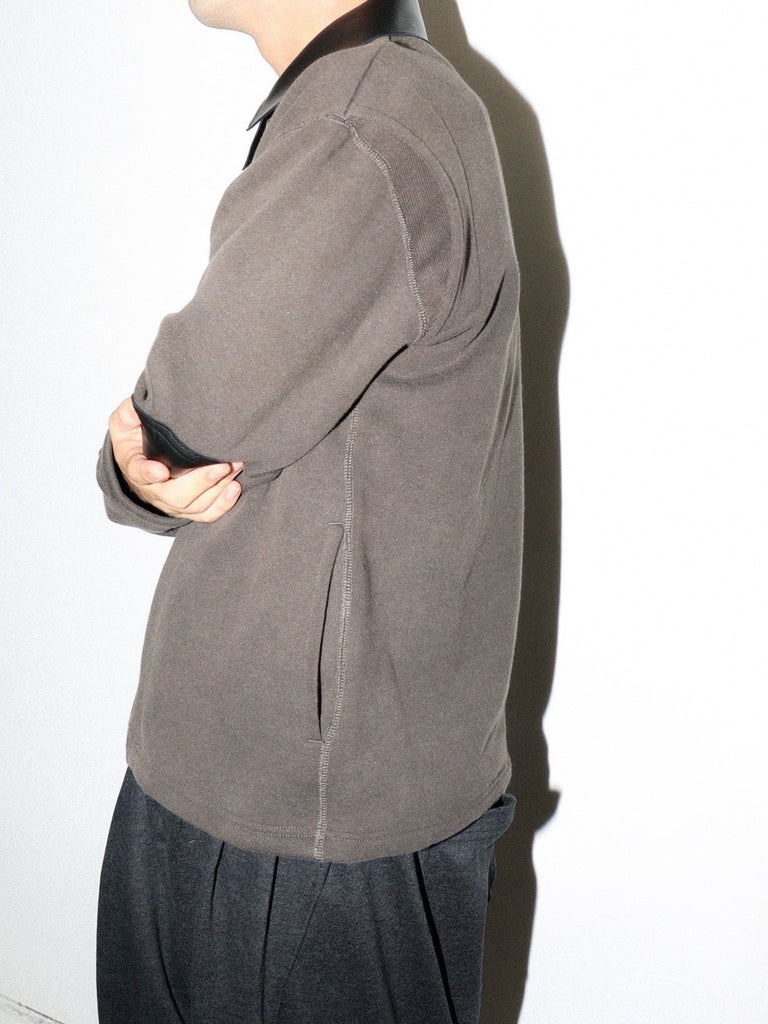 LEATHER COLLAR FADE SWEAT ZIP JACKET