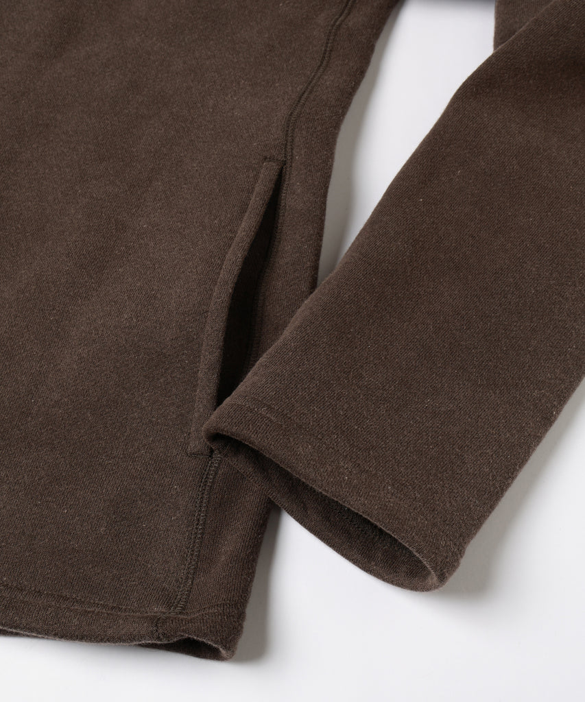 オリジナルの引き手を使用し、襟とエルボーパッチには柔らかく、肌触りのよいラムレザーを使用したアイテム。