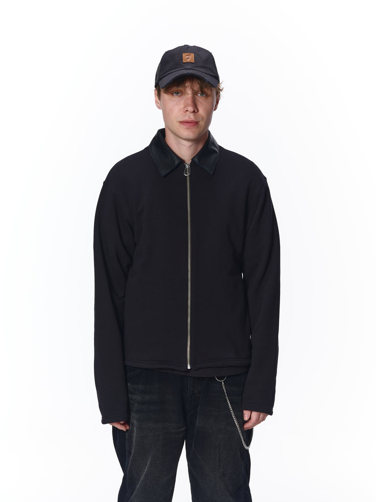 リアルレザーのスイッチングがアクセントとなったジップジャケット。