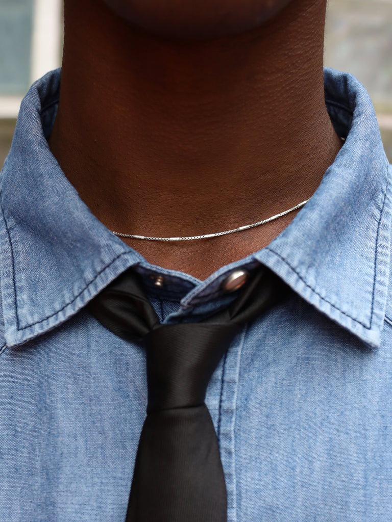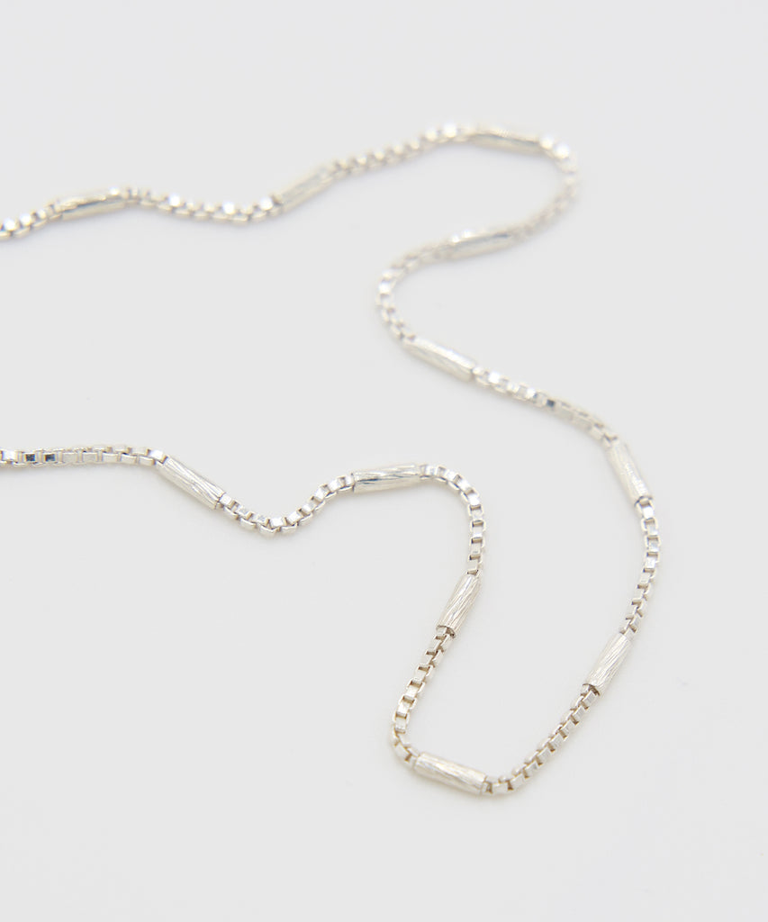 細いチェーンを使用し、適度な存在感がありながらも、幅広いコーディネートに馴染みやすいデザイン。