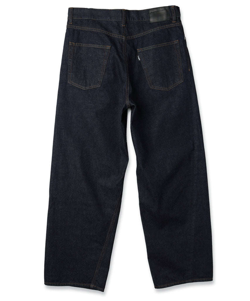 ハイウエストでワイドストレートのリラックスフィットなシルエットとなっており、5ポケットデザインのデニムパンツとなってります。