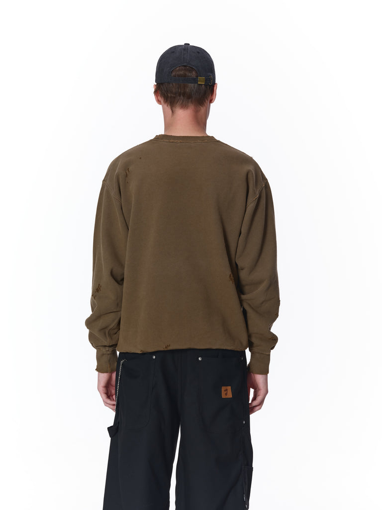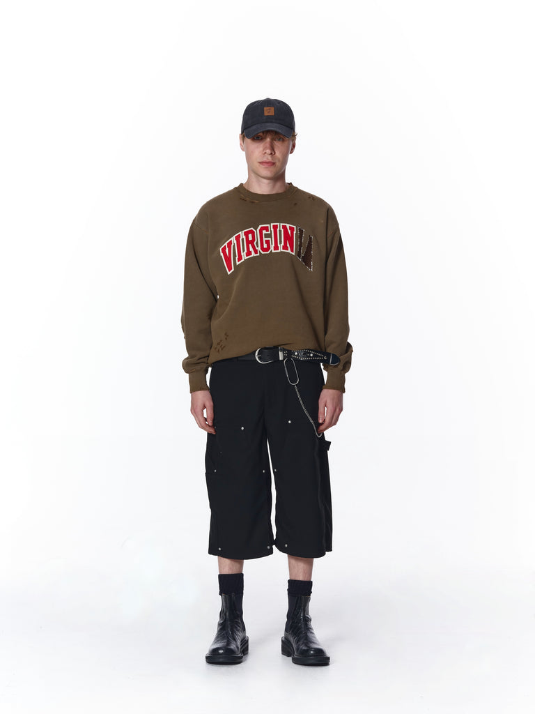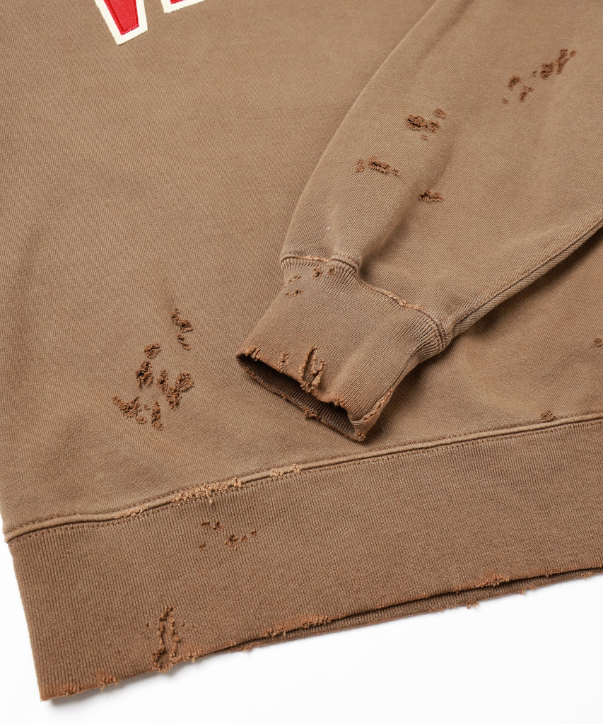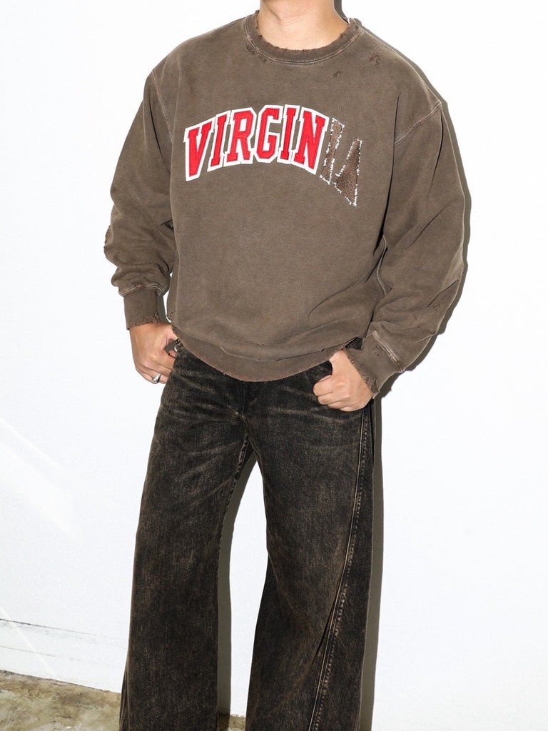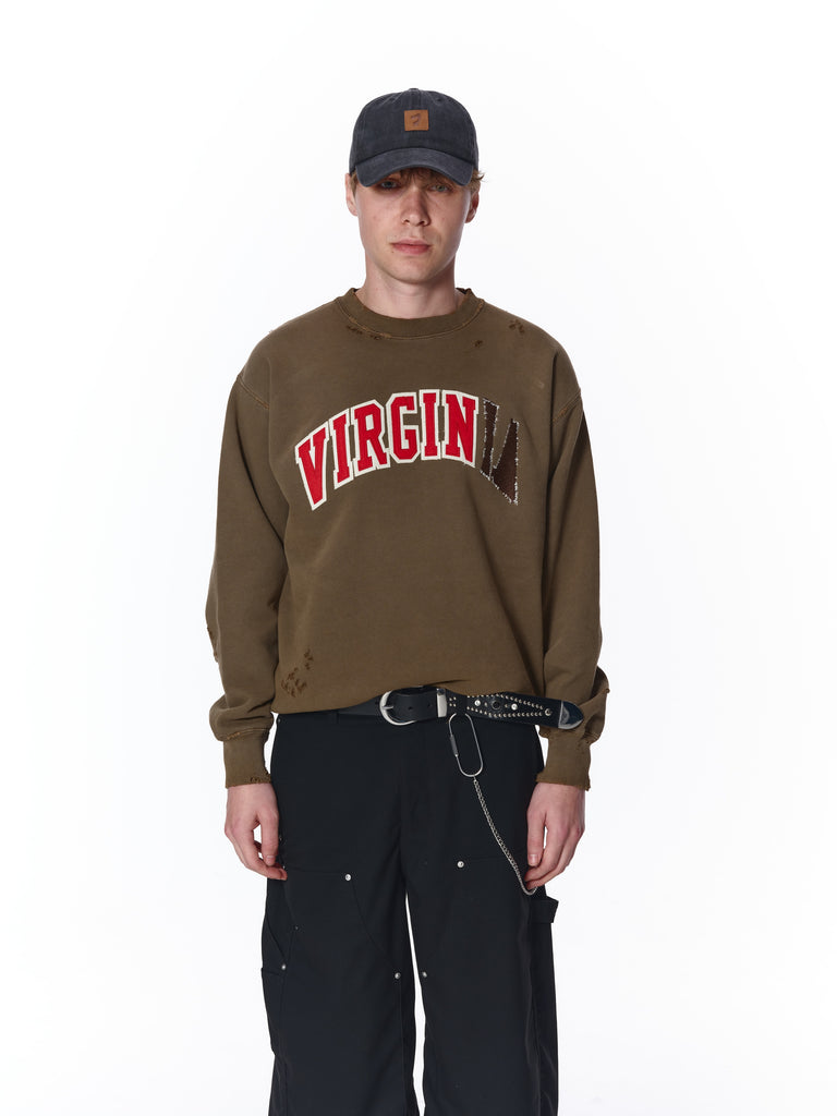 フロントに「VIRGINIA」のワッペンを配したダメージスウェット。