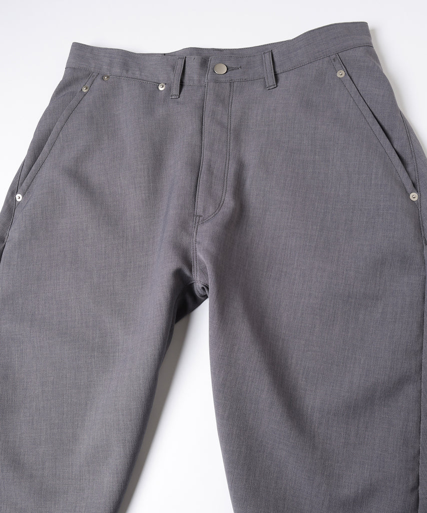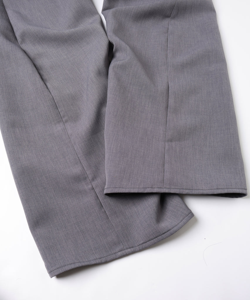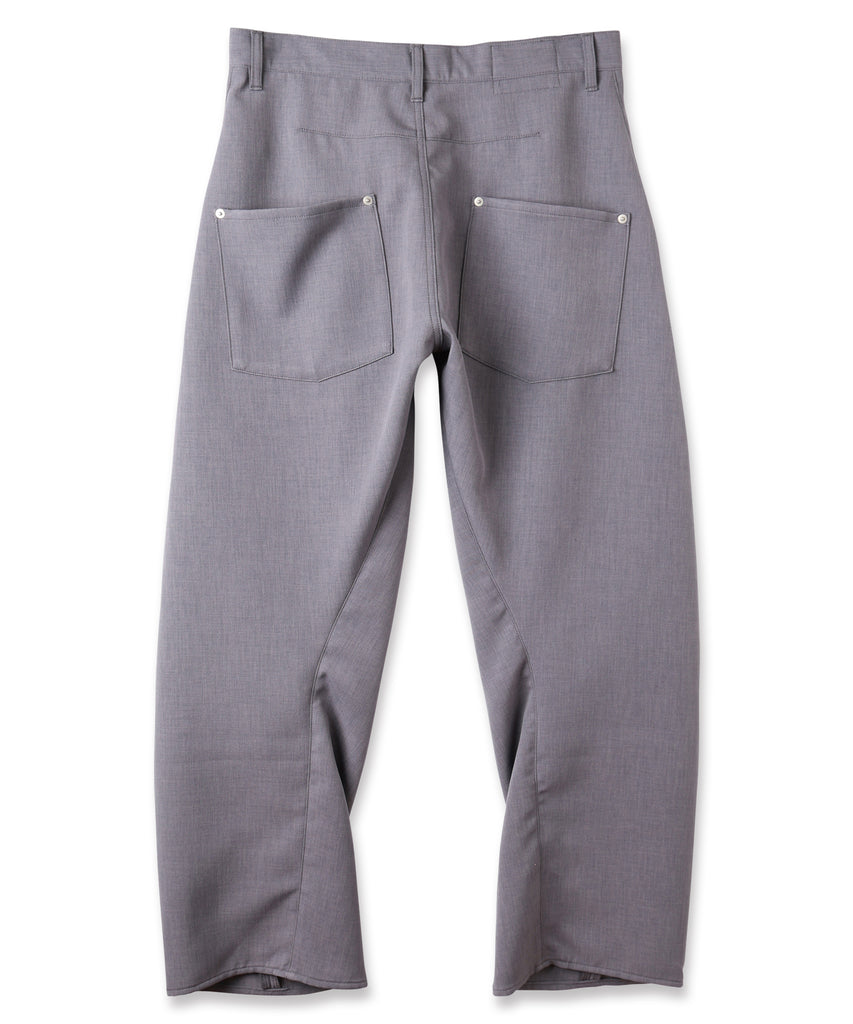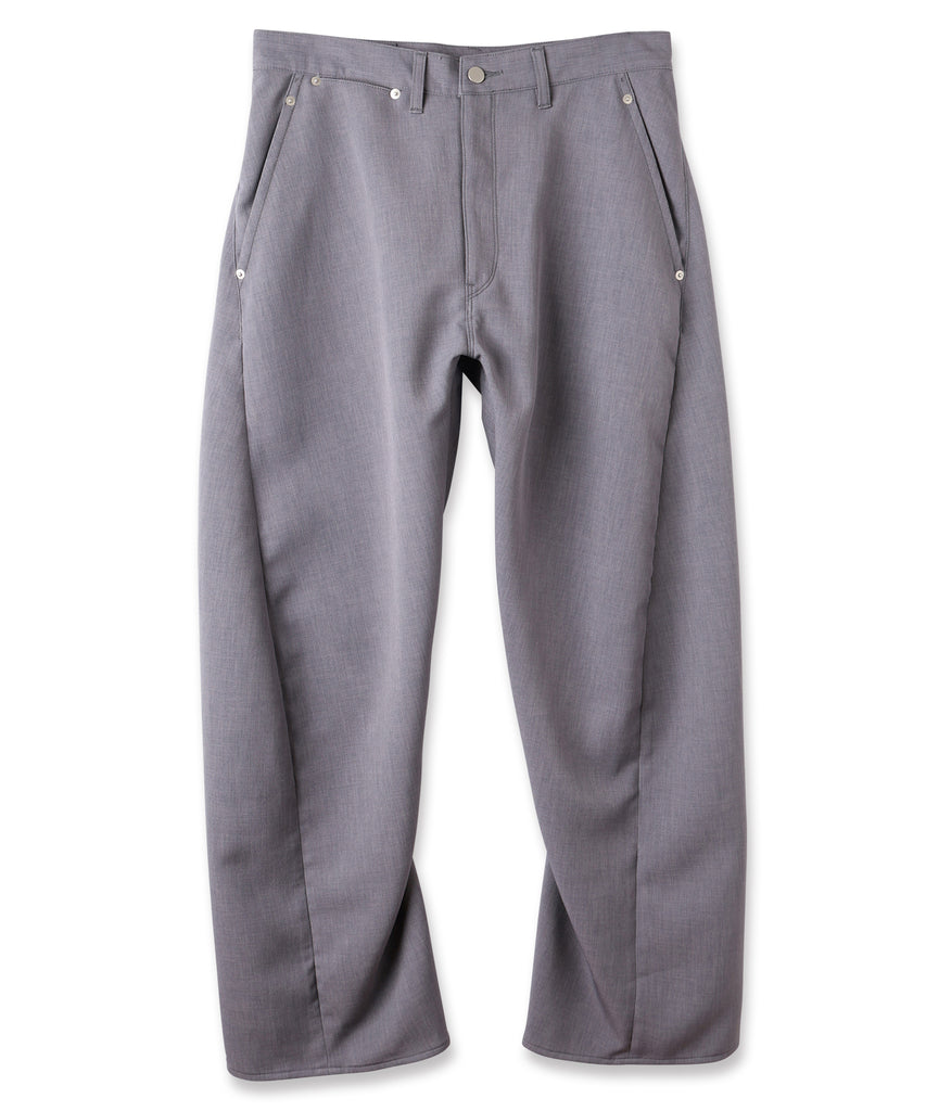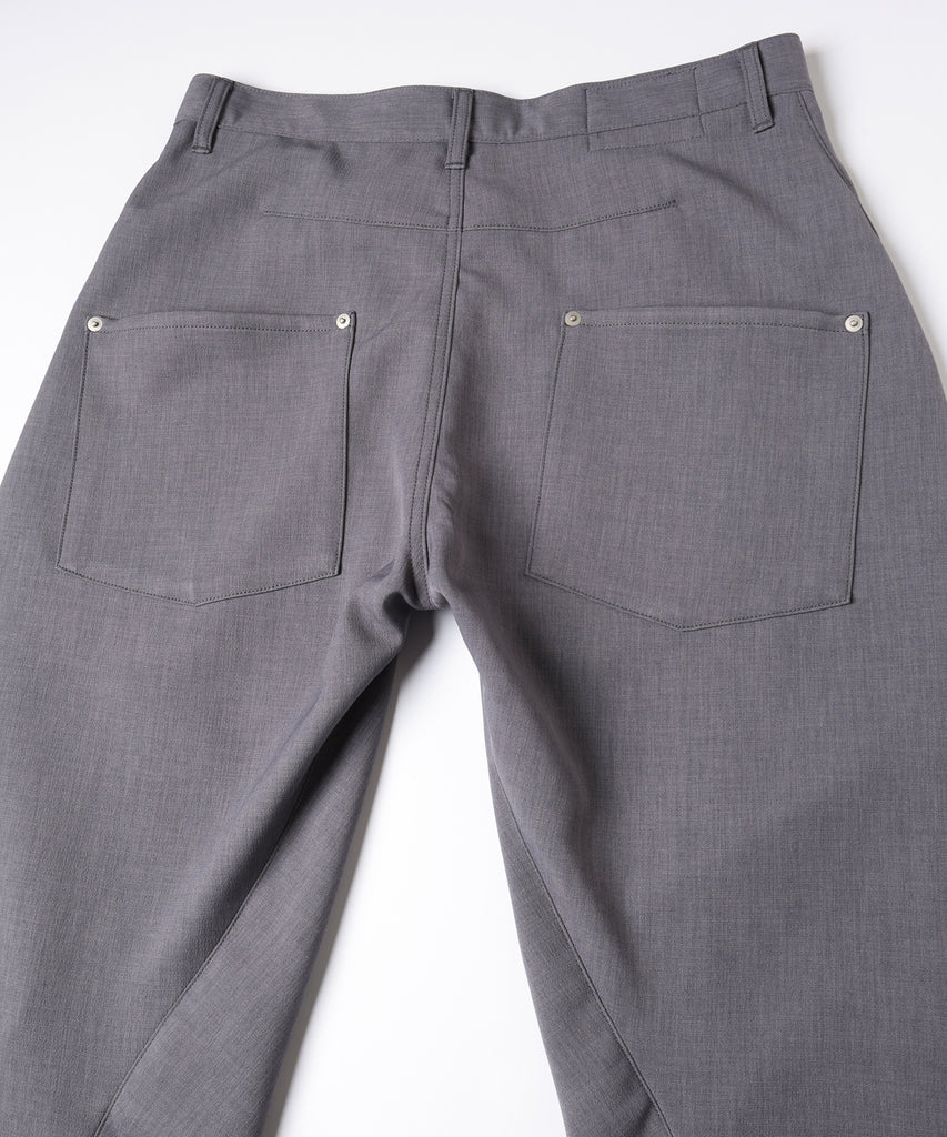立体的なパターンによるサイドシームの捻れが独特なシルエットのパンツとなっております。