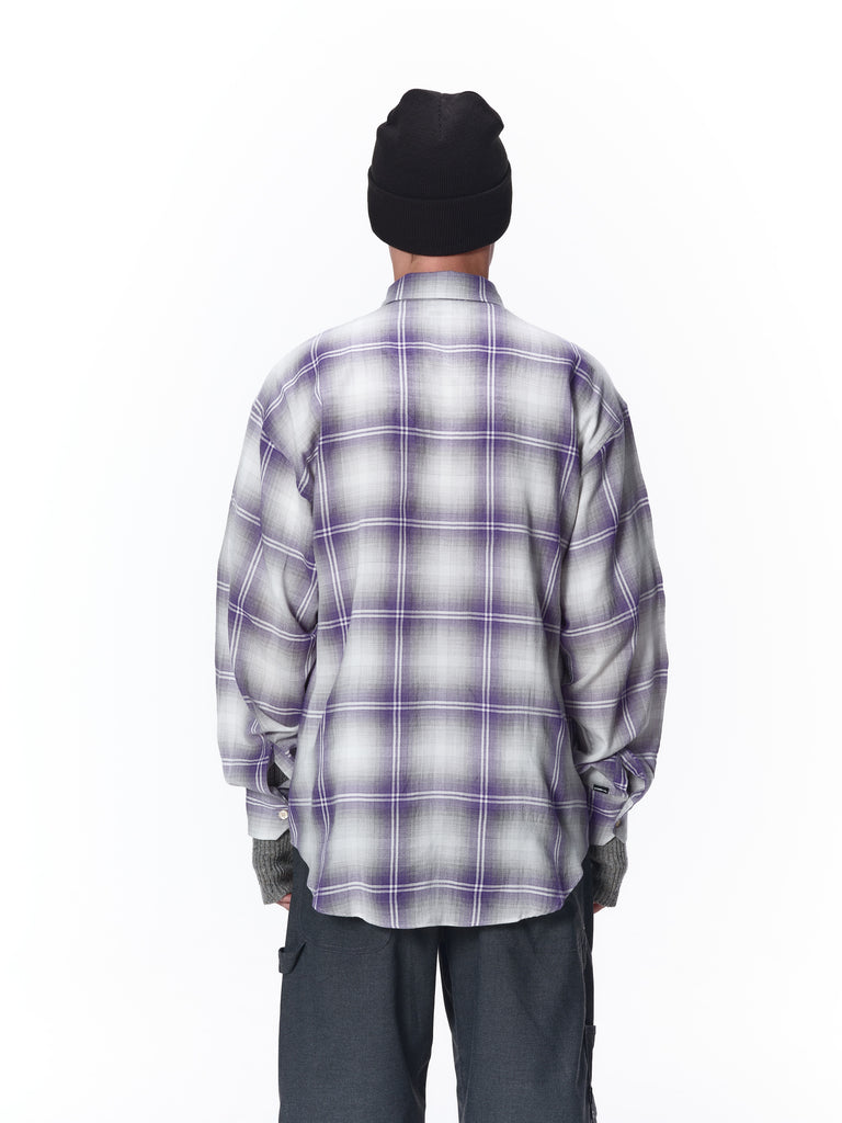 オリジナルチェック素材を使用した、オンブレチェックシャツ。