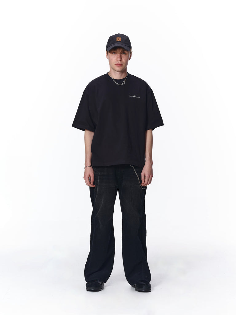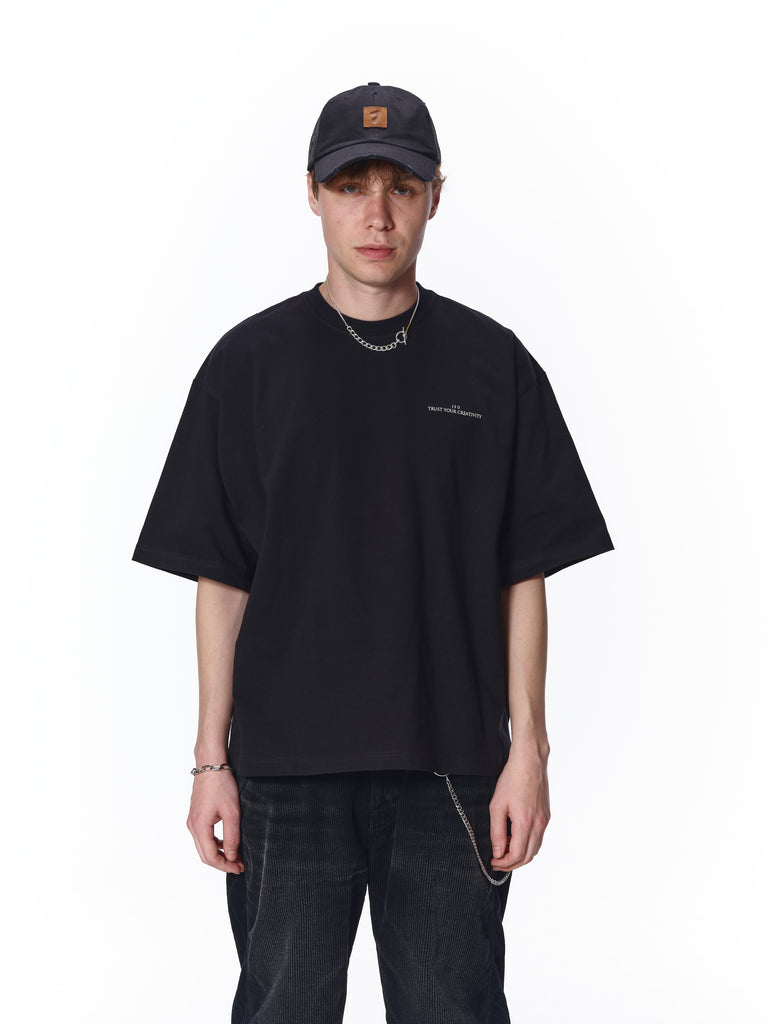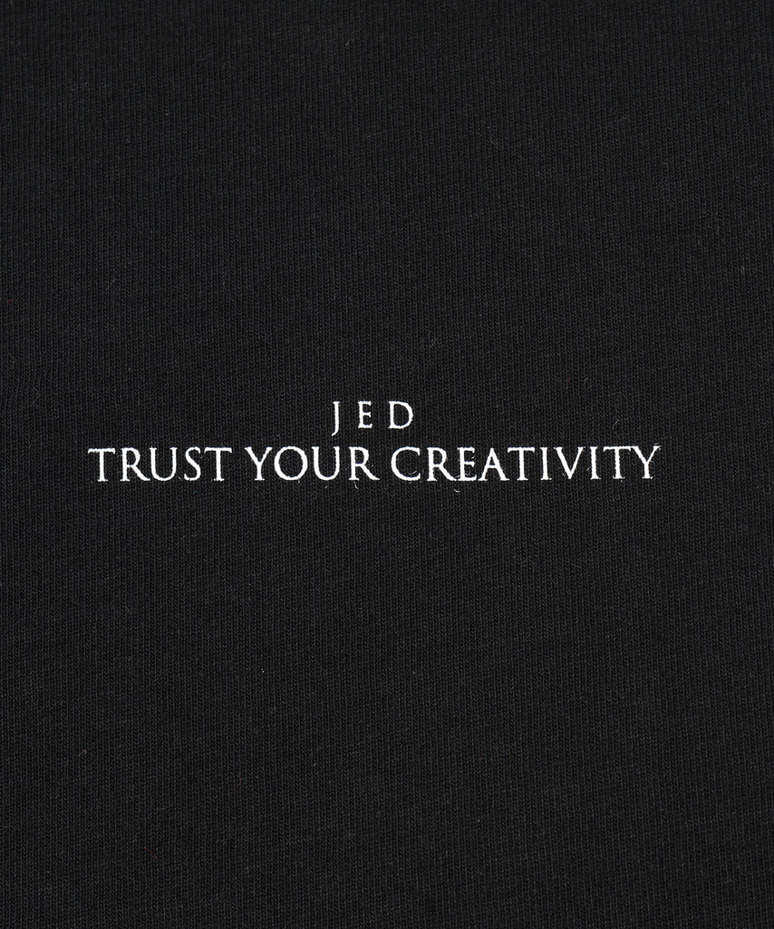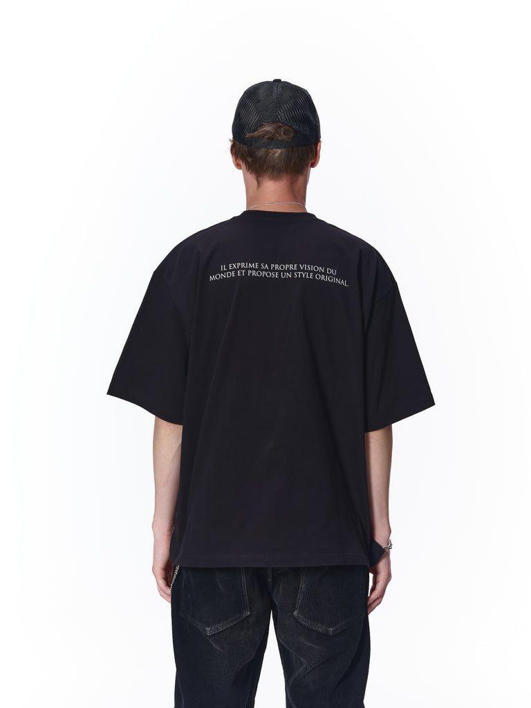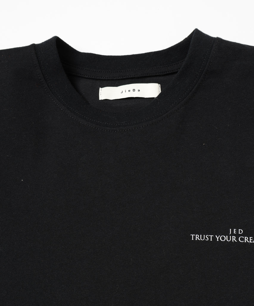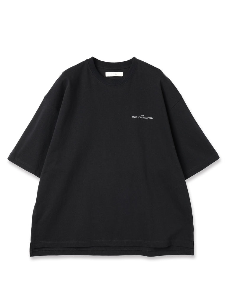 前後にプリントを配したJIEDA定番シルエットのオーバーサイズTシャツ。