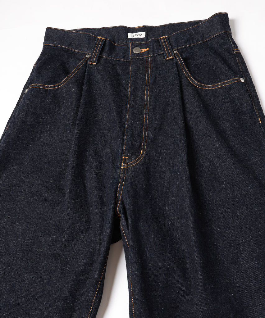 生地は12ozの国産ワンウォッシュデニム素材を使用しておりシーズンを通して快適に着用可能。着用と洗濯を重ねることで風合いの変化も楽しんで頂けます。