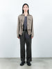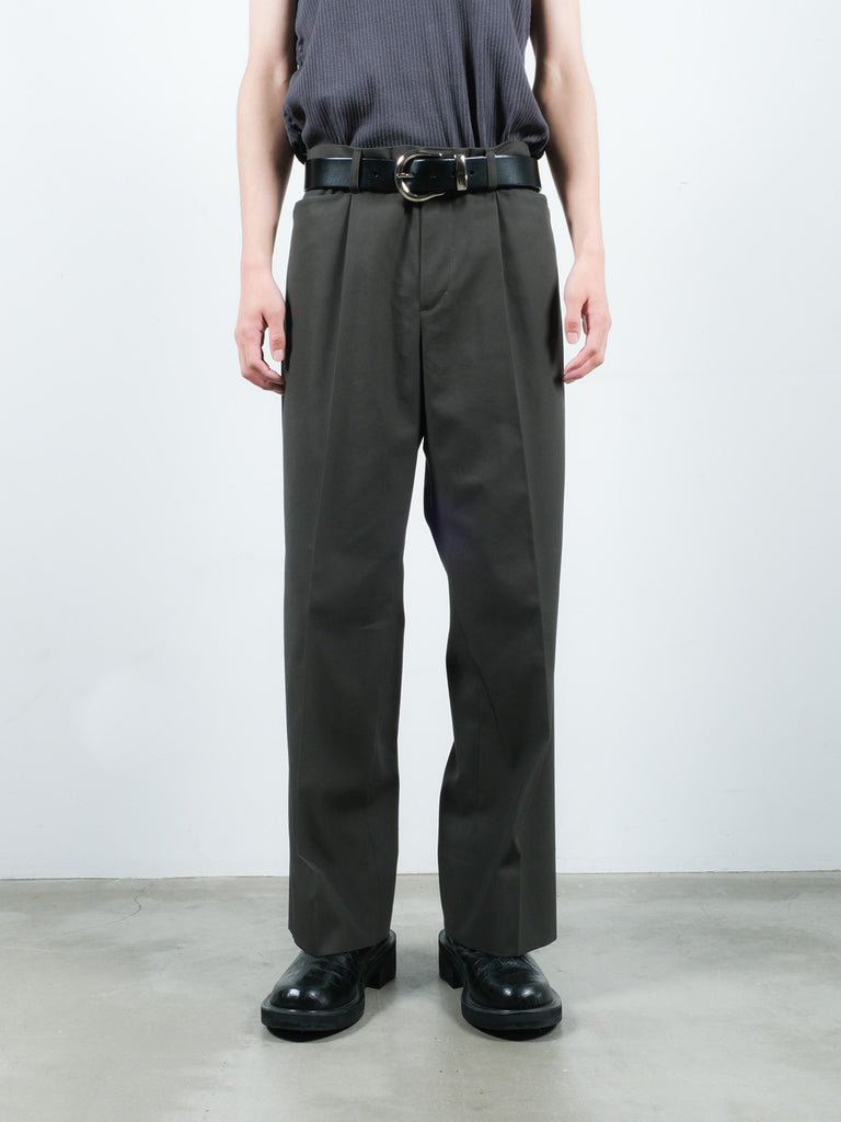 ワークディテールで見られる前開きのホックの仕様やスラックスディテールで見られるクリース線を施すなど、ニュートラルなバランスで、シンプルながらもこだわりのある1着。