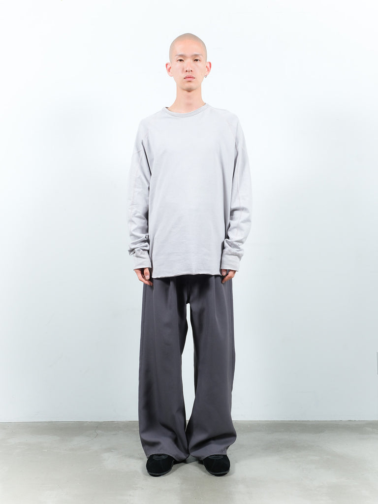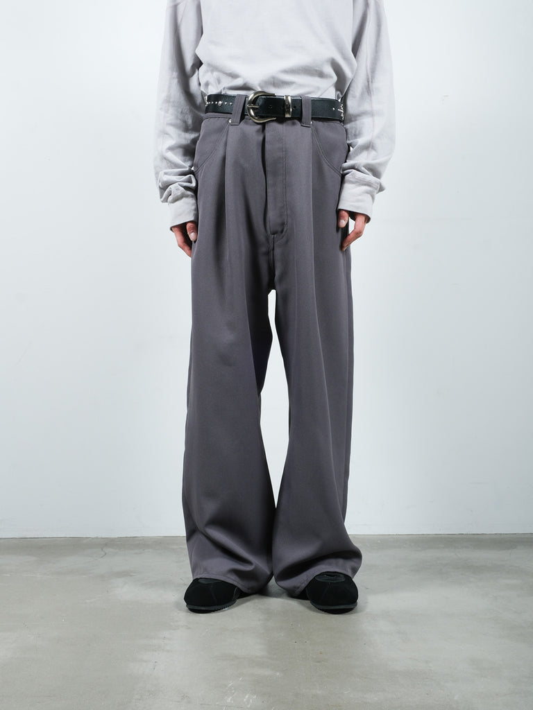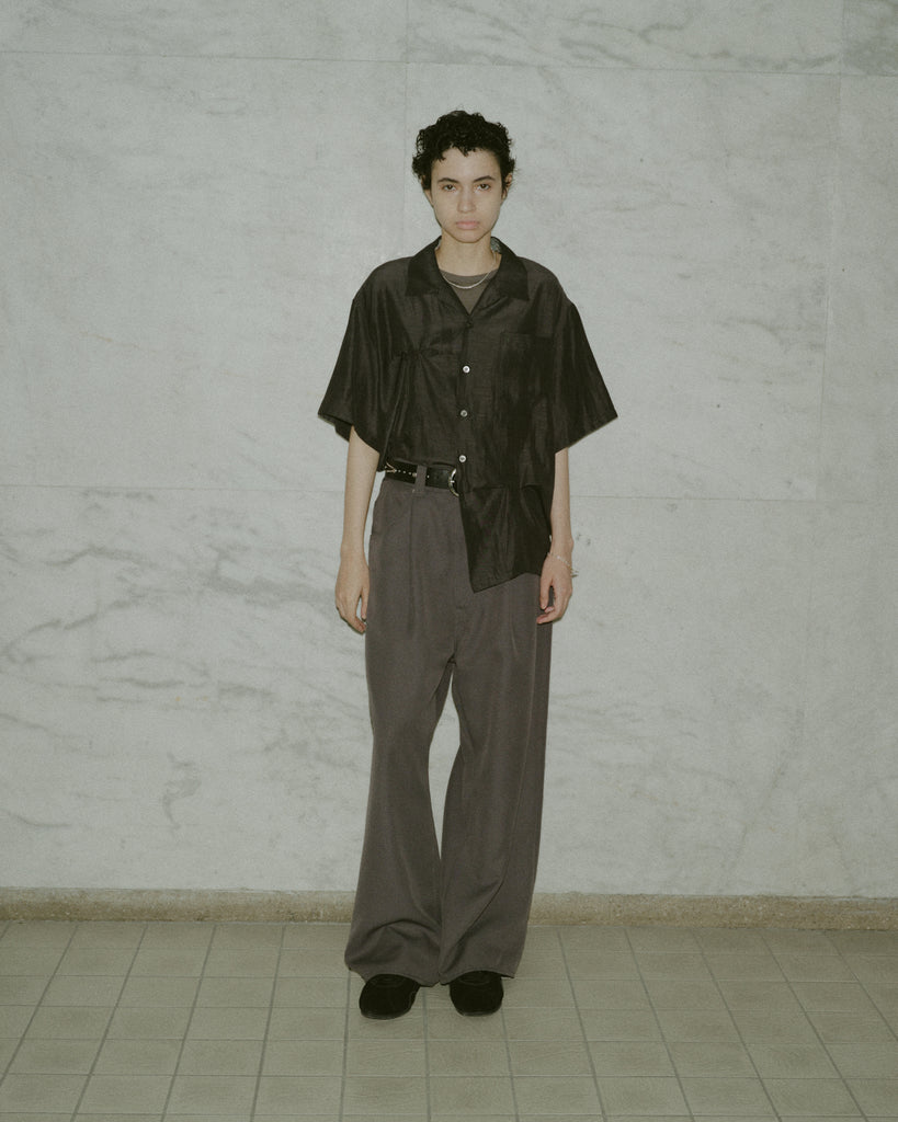 ワンタックを配したストレートシルエットのワイドパンツとなっており、股上を深めに設定し、腰回りをスッキリさせることでミニマルなデザインながらも、シルエットにこだわった1着となっております。