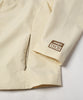 フロントの前開きには着脱のしやすいよう隠しドットボタンを採用。脇の縫い目と胸ポケットはコンシールファスナーポケットとなっております。