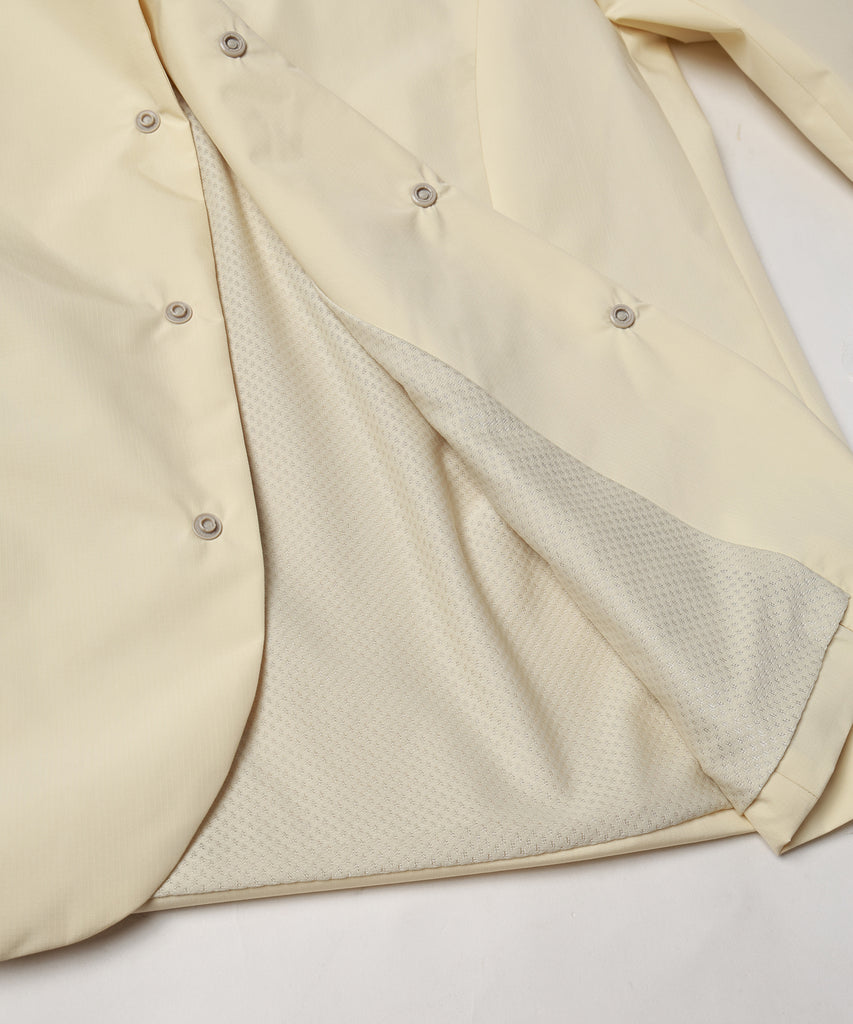表地には撥水性、防風性を兼ね備えた機能素材を使用し、裏地には吸水性に優れたストレッチニット素材を使用することで、機能面に優れたテーラードジャケットとなっております。