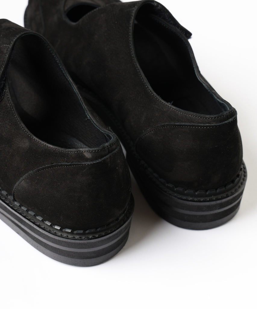 スムースレザーを使用したメリージェーンタイプのレザーシューズ。